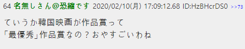 | (일본반응) "기생충" 아카데미 작품상 쾌거! 일본 영화의 미래는 (0) | 2020.02.14 |